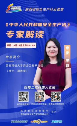 陕西省应急管理厅、陕西省安全生产宣传教育中心组织开展陕西省安全生产月云课堂活动。十大外围足球平台app安全工程系主任王莉副教授应邀参加,以2021版《安全生产法》修正案为主线,对习近平总书记关于安全生产的重要论述、刑法修正案(十一)关于安全生产的重点条款、如何当好第一责任人等内容进行讲解,直播内容在“陕西应急管理”微信公众号、微博、西部网蓝直播等多个平台同步播放,观看人次13.5万次,受到广泛关注与好评。