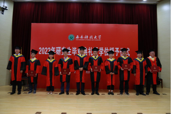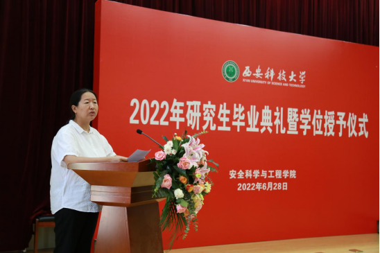 导师代表李树刚教授为全体毕业生送上美好祝福,希望大家将“西迁精神”“公司精神”“精彩精神”身体力行地传递到后续的工作和科研过程中,拼搏奋斗,不屈不挠,以坚定的步伐,一步一步迈向成功。坚持守正创新,读万卷书,行万里路,在各行各业牢记使命,彰显担当,开拓创新,铸造新辉煌,争做西科大有大抱负、大气魄、大本事、大勇气的中国特色社会主义新时代优秀接班人。