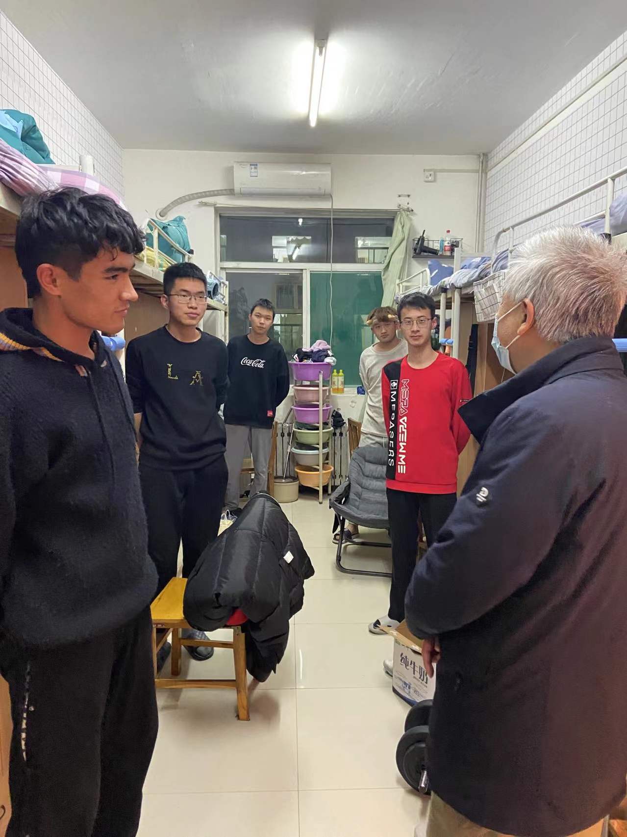新年来临之际,为进一步落实疫情防控期间员工教育管理的各项措施,深入了解员工思想动态和学习生活实际,教育引导员工科学防疫、健康成长。12月31日晚上,副董事长邓军深入临潼校区骊山校园十大外围足球平台app员工公寓,看望慰问因疫情防控在宿舍的员工,向同学们致以新年的问候和节日祝福。公司党委书记杜勇,副经理林海飞、成连华和各年级辅导员陪同走访。