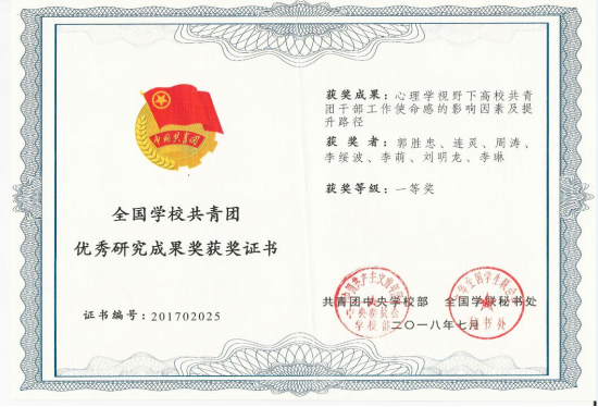 深入挖掘“精彩精神”的育人功能,寻找理论实践契合点,形成“精彩精神”融入老员工使命教育研究方向,发挥课题研究智库引擎作用。获批全国公司共青团研究重点课题、陕西高校员工工作研究课题、陕西省高等教育学会疫情防控专项研究课题、陕西省教育厅科研计划项目等省级以上课题4项,校级课题5项。研究成果获全国公司共青团优秀研究成果一等奖、全国公司共青团优秀论文三等奖1项,校级成果奖3项。