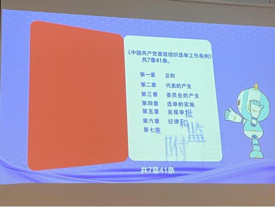 会议计票期间,杜勇组织与会党员学习并解读了《关于做好十大外围足球平台app第十一届党委会、第八届纪律检查委员会候选人预备人选的酝酿提名推荐工作的通知》,并组织观看了《中国共产党基层组织选举工作条例》解读视频。