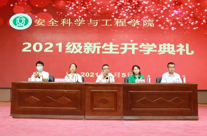 典礼在庄严的国歌声中拉开帷幕,应急技术与管理专业负责人郑学召教授,本科生代表院员工会主席邢可欣、研究生代表黄罗鑫分别致欢迎辞,安全工程(卓越)2101班张宇波、安全工程2102班研究生常泽晨分别代表2021级新生发言。