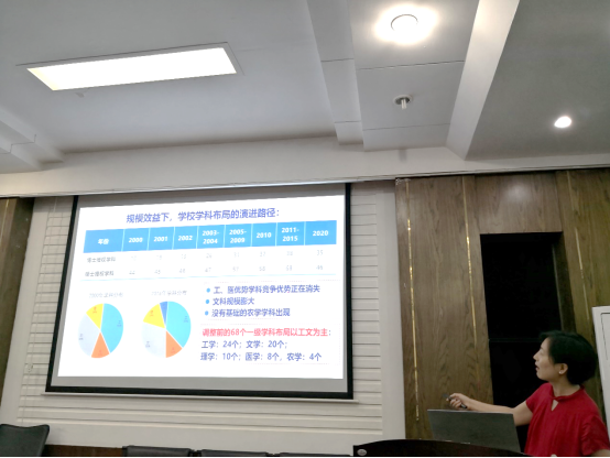 发展规划与团队建设处处长武明花向调研组做了《内涵式发展、高质量建设》团队建设专题报告,详细介绍了中南大学“小、精、优团队建设”的思路、做法、保障和实效。