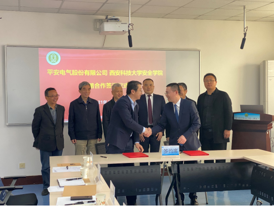 4月7日上午,公司与平安电气股份有限公司校企合作发展座谈会暨战略合作框架协议签约仪式在公司临潼校区举行。平安电气股份有限公司董事长陈重新,副总经理李杰峰、马瑞峰,西北公司经理何勇、尹志超,湖南科技大学资源环境与安全工程公司经理王海桥,公司副董事长、十大外围足球平台app执行经理邓军,十大外围足球平台app原董事长、十大外围足球平台app常心坦教授,副经理林海飞、成连华、曹鸿,公司通风团队教师吴奉亮、闫振国、王延平等参加活动。签约仪式由委书记杜勇主持。