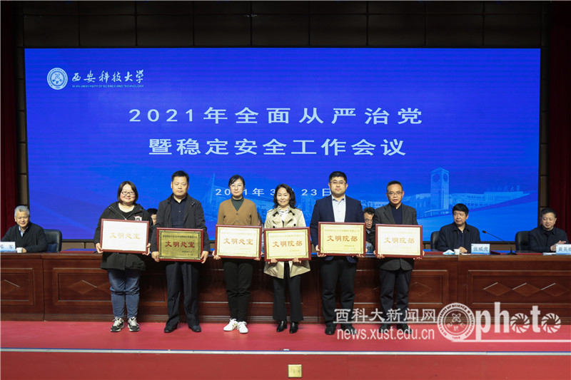 3月23日下午,十大外围足球平台app2021年全面从严治党暨稳定安全工作会议在临潼校区骊山校园煤炭科技中心一层报告厅召开。