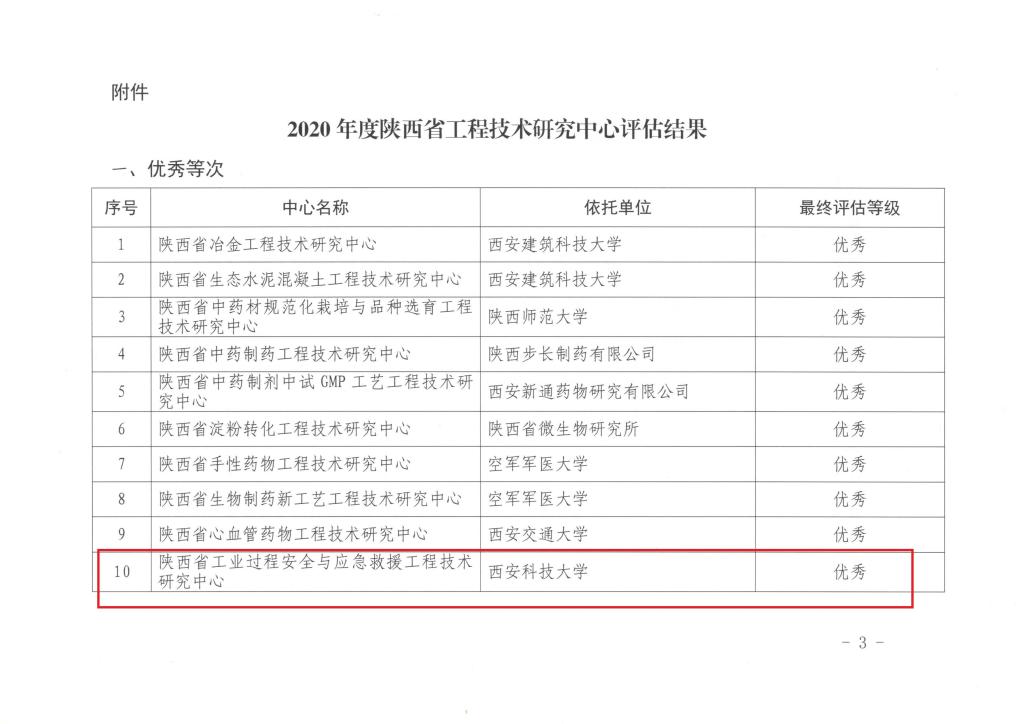 近日,陕西省科技厅发布了《关于2020年度陕西省工程技术研究中心评估结果的通报》,由公司邓军教授牵头、依托公司安全科学与工程团队建设的陕西省工业过程安全与应急救援工程技术研究中心评估优秀。本次全省有44家工程中心参加评估,其中获评优秀的仅为10个。