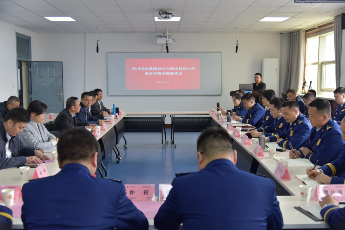 10月18日上午,四川省消防救援队伍火灾事故调查业务培训班在十大外围足球平台app临潼校区开班。开班式结束后,四川消防救援总队总工程师陈硕及全体学员与十大外围足球平台app消防救援系教师代表座谈。座谈会在临潼校区安监公司第六研修室召开。委书记杜勇、副经理成连华,消防救援系系主任张嬿妮等10余名老师参加了座谈会。会议由成连华主持。