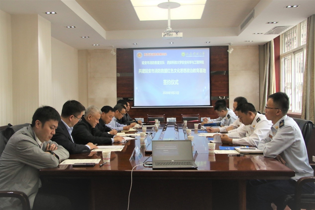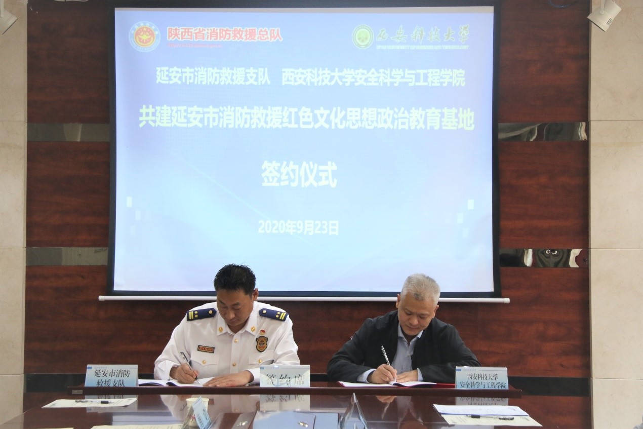 9月23日,延安市消防救援支队与十大外围足球平台app共建“延安市消防救援红色文化思想政治教育基地”签约仪式举行。陕西省消防救援总队政治部主任杨守波、延安市消防救援支队支队长薛辉及相关部门负责人,十大外围足球平台app副董事长陈春林、安全科学与工程公司党委书记杜勇、执行经理邓军及消防救援系负责参加了签约仪式,仪式由委书记杜勇主持。
