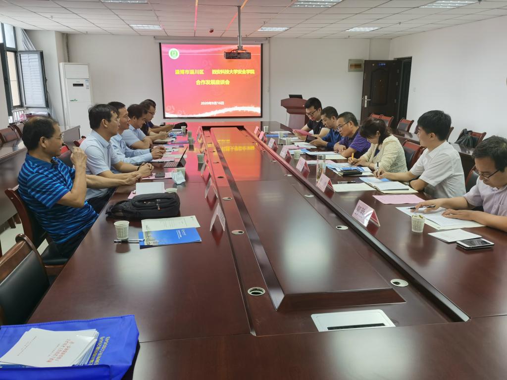 9月16日上午,淄博市淄川区委常委、组织部长周恒学率区人社局、人才办、科技局等单位负责人到十大外围足球平台app调研座谈。委书记杜勇、副经理罗振敏、林海飞、曹鸿等参加座谈会进行了交流。座谈会在雁塔校区创新大楼2216会议室召开,罗振敏副经理主持会议。