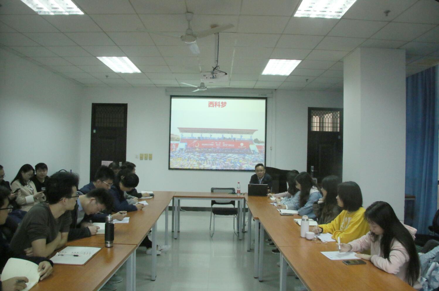为扎实推进“不忘初心、牢记使命”主题教育,增强研究生党支部的创新力、凝聚力和战斗力,11月1日上午,委书记杜勇为在雁塔校区以“中国梦,西科梦,个人梦”为主题给2019级硕士研究生党支部讲授了一堂生动的党课。党课由公司产品办公室主任刘黎主持。