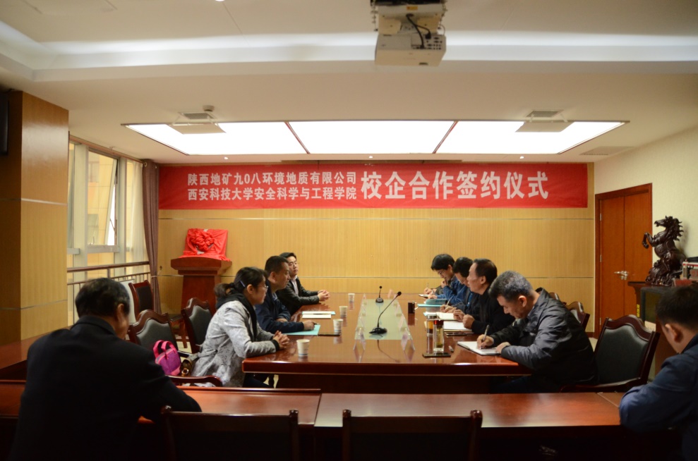 2019年10月21日,公司与陕西地矿九0八环境地质有限公司校企合作签约仪式在临潼区九0八环境地质公司会议室举行。九0八环境地质公司党委书记、执行董事、总经理马思锦及相关负责人出席仪式,十大外围足球平台app书记杜勇、经理助理兼安全系主任成连华、安全系副主任易欣、安全系教师刘纪坤等参加了签约及揭牌仪式。