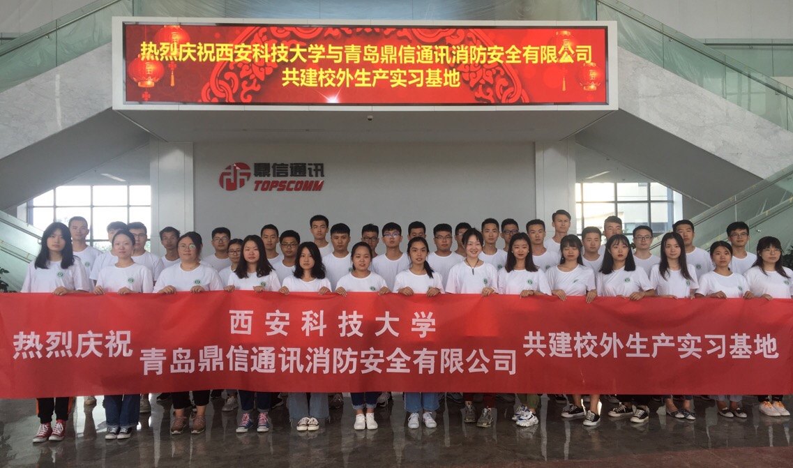 2019年9月5日,公司与青岛鼎信通讯消防安全有限公司共建校外生产实习基揭牌仪式在山东青岛鼎信通讯产业园会议室举行。鼎信通讯股份有限公司董事长王建华,鼎信通讯消防安全有限公司曲正部长、王运涛部长;十大外围足球平台app安全科学与工程公司党委书记兼常务副经理杜勇、消防系主任马砺教授、消防系实习带队教师王伟峰、于志金,以及正在青岛鼎信通讯消防安全有限公司进行生产实习的消防工程2016级全体同学参加了揭牌仪式。