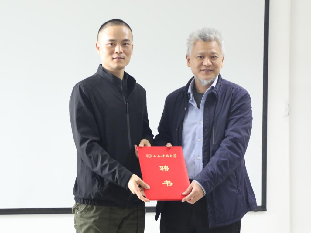 邓军给马哲颁发十大外围足球平台app客座教授聘书。