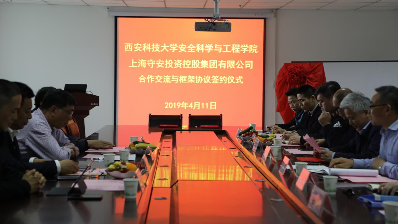 4月12日上午,十大外围足球平台app与上海守安投资控股集团有限公司合作交流与框架协议签约仪式在雁塔校区科创大厦2216会议室举行。西安市应急管理局副局长刘超,上海守安投资控股集团CEO俞新培、副总经理侯乾,上海市消防局高级工程师马哲,上海石化工烯烃部安全环保处处长汪忠辉,西安市综合保税区安环部部长孙大为,委书记杜勇、执行经理邓军、副经理罗振敏及相关负责人参加了签约仪式。会议由杜勇主持。