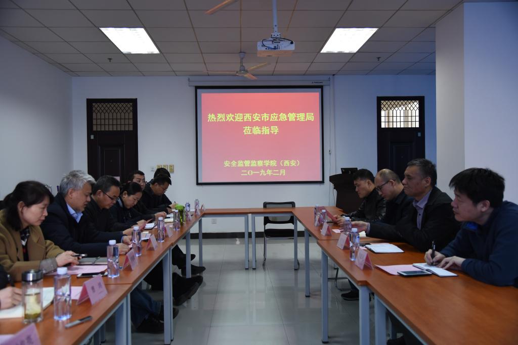 2月27日下午,西安市应急管理局副局长刘超、市应管局应急指挥中心主任范升彦、市应管局网信办主任党乐、市应管局科技法规处副处长徐廷珂等一行4人到十大外围足球平台app调研。调研座谈会在雁塔校区十大外围足球平台app会议室召开。委书记兼常务副经理杜勇、执行经理邓军等党政班子成员和相关人员参加了调研座谈会。会议由杜勇主持。