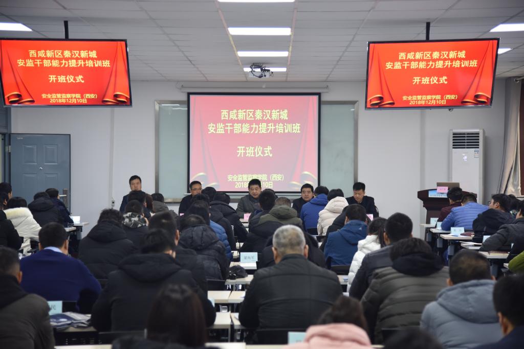 12月10日上午,西咸新区秦汉新城安监干部能力提升培训班在十大外围足球平台app临潼校区骊山校园开班。西咸新区安委办主任、安监局局长马忠平,秦汉新城安委办主任、安监局局长冯荣军,安监局副局长陈继珍,秦汉新城开发建设集团副总经理郭社库,安全监管监察公司(西安)党委书记杜勇,及来自秦汉新城安委会各成员单位的80余名学员参加了开班仪式。开班仪式由秦汉新城安监局副局长陈继珍主持。
