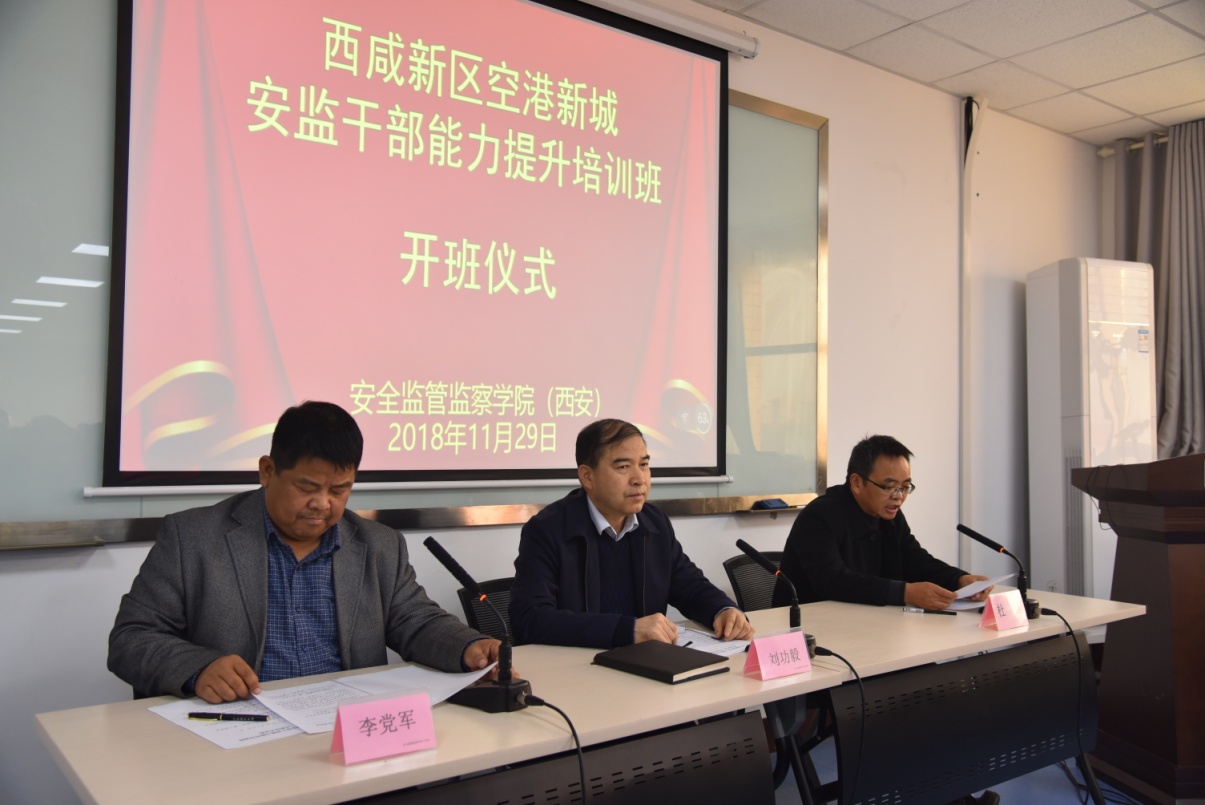 11月29日上午,西咸新区空港新城安监干部能力提升培训班在十大外围足球平台app临潼校区骊山校园开班。空港新城党委委员、管委会副主任刘功毅、安全监管监察公司(西安)党委书记杜勇及来自空港新城安委会各成员单位的80余名学员参加了开班仪式。开班仪式由空港新城安委办副主任、安监局副局长李党军主持。