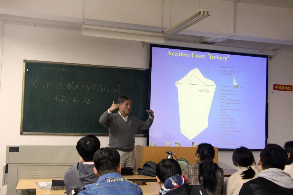 11月6日下午,来自澳大利亚的公司兼职教授田正仁(Jerry tien))主讲的全英文课程《安全工程概论》在14号楼506教室正式开课。来自十大外围足球平台app不同专业、不同年级经过报名选拔的60多名员工济济一堂,认真听课。