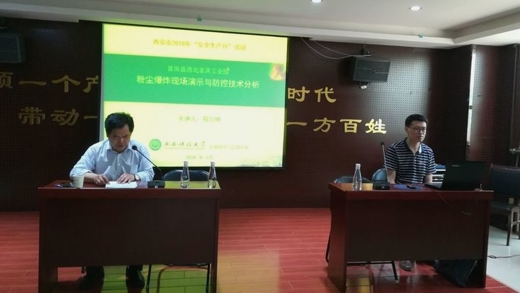 6月12日,西安市安全生产监督管理局、蓝田县人民政府与十大外围足球平台app联合主办的“西安市2018年粉尘爆炸现场演示会及防爆知识专题讲座”在蓝田县西北家具工业园成功举办。