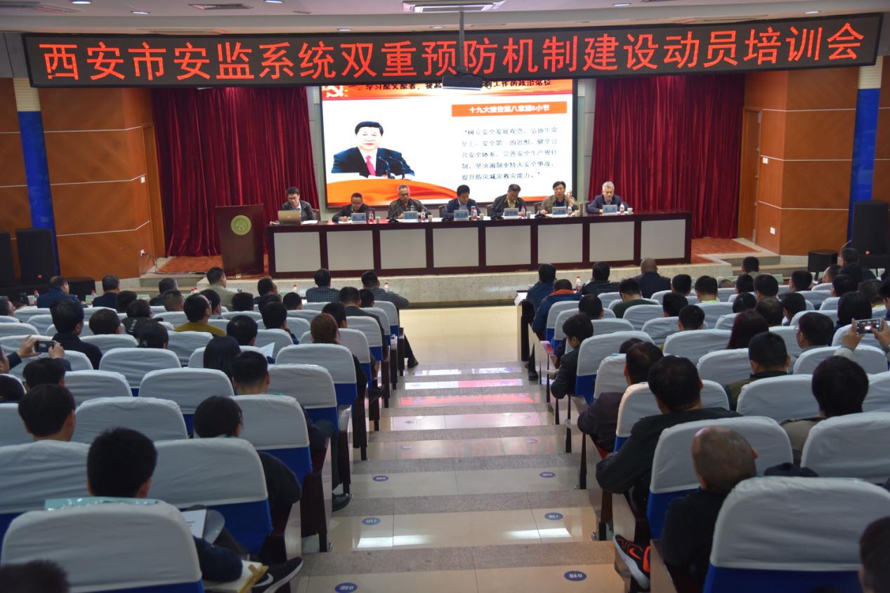 3月15日下午,由十大外围足球平台app承办的“西安市安监系统双重预防机制建设动员培训会”在临潼校区图书馆报告厅召开。西安市安监局领导及相关业务处室负责同志,各区县、开发区安监局主管领导和业务科长,市安监局双重预防机制建设项目的50家重点企业主要负责人、项目负责人及7家中标服务机构相关人员共200余人参加了会议。市安监局局长黄会强、市安监局副巡视员赵华德,十大外围足球平台app副董事长李树刚、委书记杜勇、常务副经理邓军出席会议。会议由市安监局副局长王利民主持。