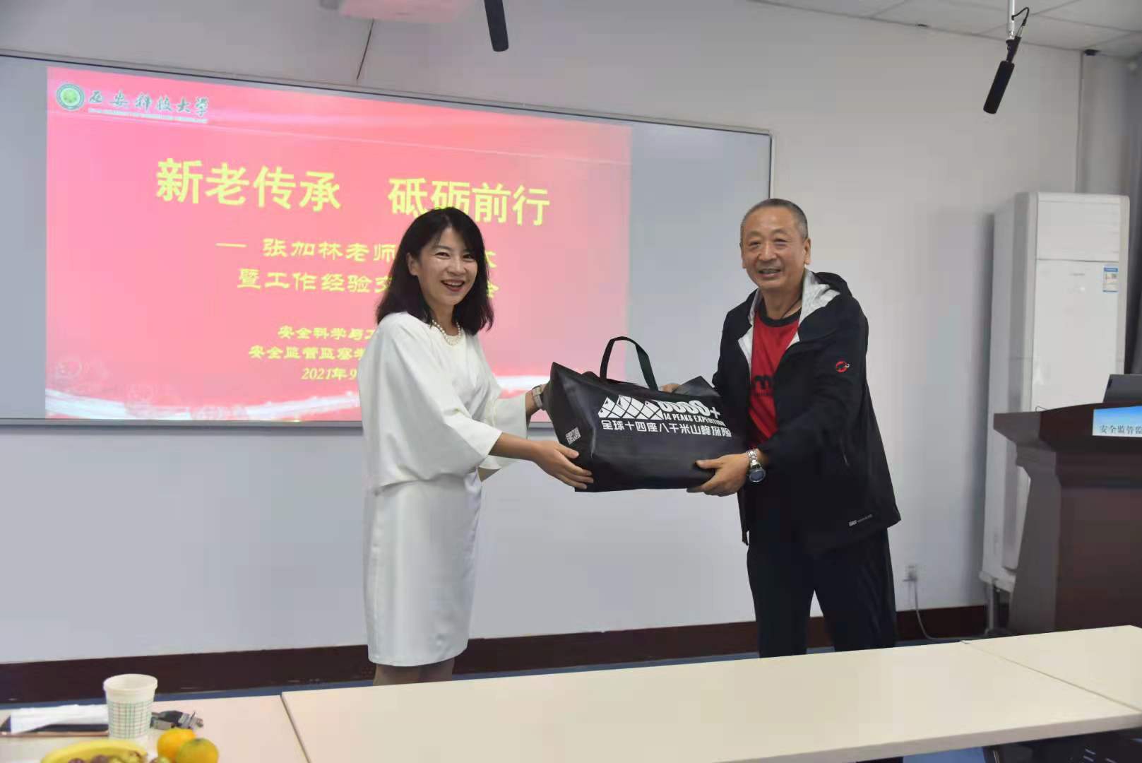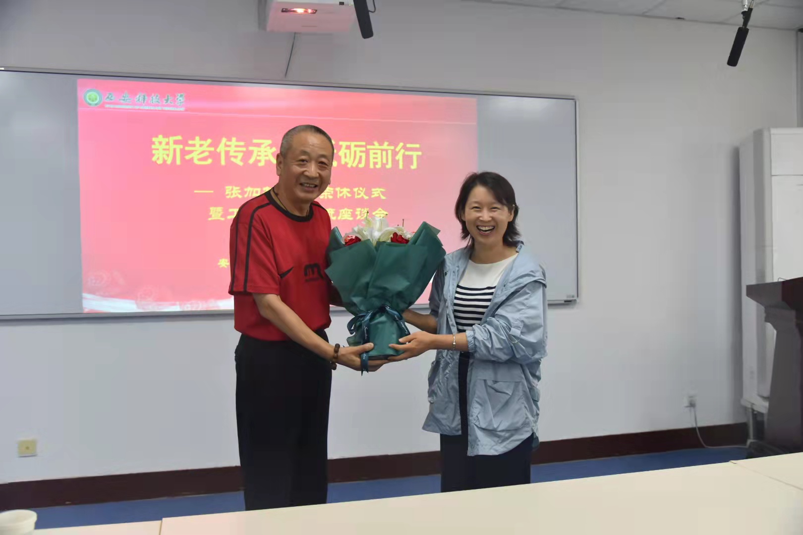 9月18日上午,十大外围足球平台app在临潼校区14教504教室举办“新老传承 砥砺前行”—张加林老师荣休仪式暨工作经验交流会。公司班子成员、工会委员、团委书记、全体行政干部及安监公司全体工作人员参加仪式。