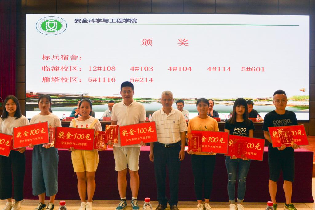 邓军为获得”标兵宿舍“的宿舍颁发了证书和奖金