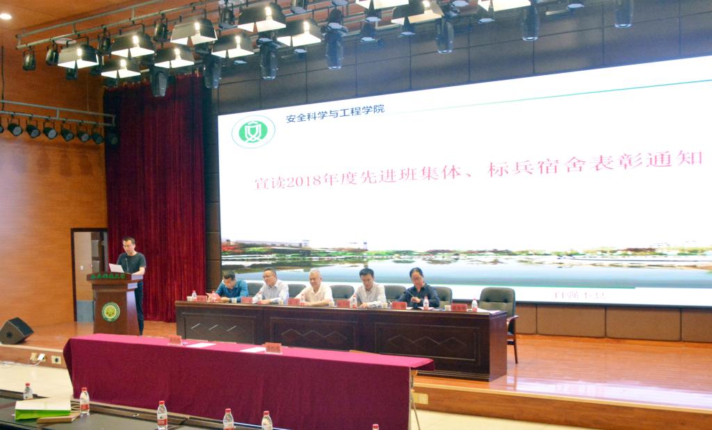 成连华宣读了2018年度先进班集体、标兵宿舍表彰文件