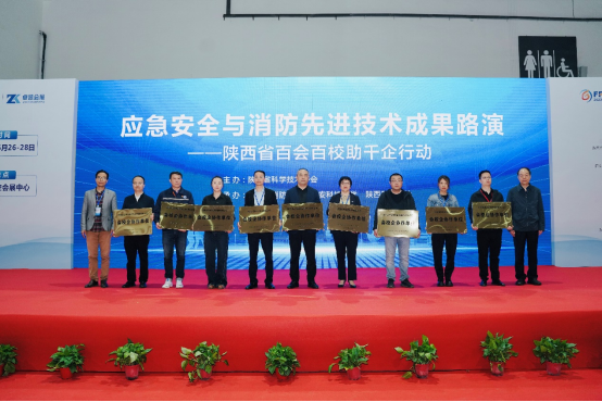 展会期间,由陕西省科学技术协会主办,陕西省消防协会、十大外围足球平台app、陕西省科技报社共同承办的陕西省百会百校助千企行动——应急安全与消防先进技术成果路演活动同馆顺利举行。此前,陕西省消防协会联合公司及10家消防科技企业,共同申报并获批陕西省百会百校助千企行动——会企校企协作项目,致力于构建消防行业协会+高校+企业联合体,旨在解决行业内实际问题,展现示范效应,为消防行业的技术创新与产业链融合注入新的活力。陕西省消防协会秘书长卞建峰、公司科技处副处长卢小飞为参与项目的企业颁发了“会校企协作单位”牌匾。