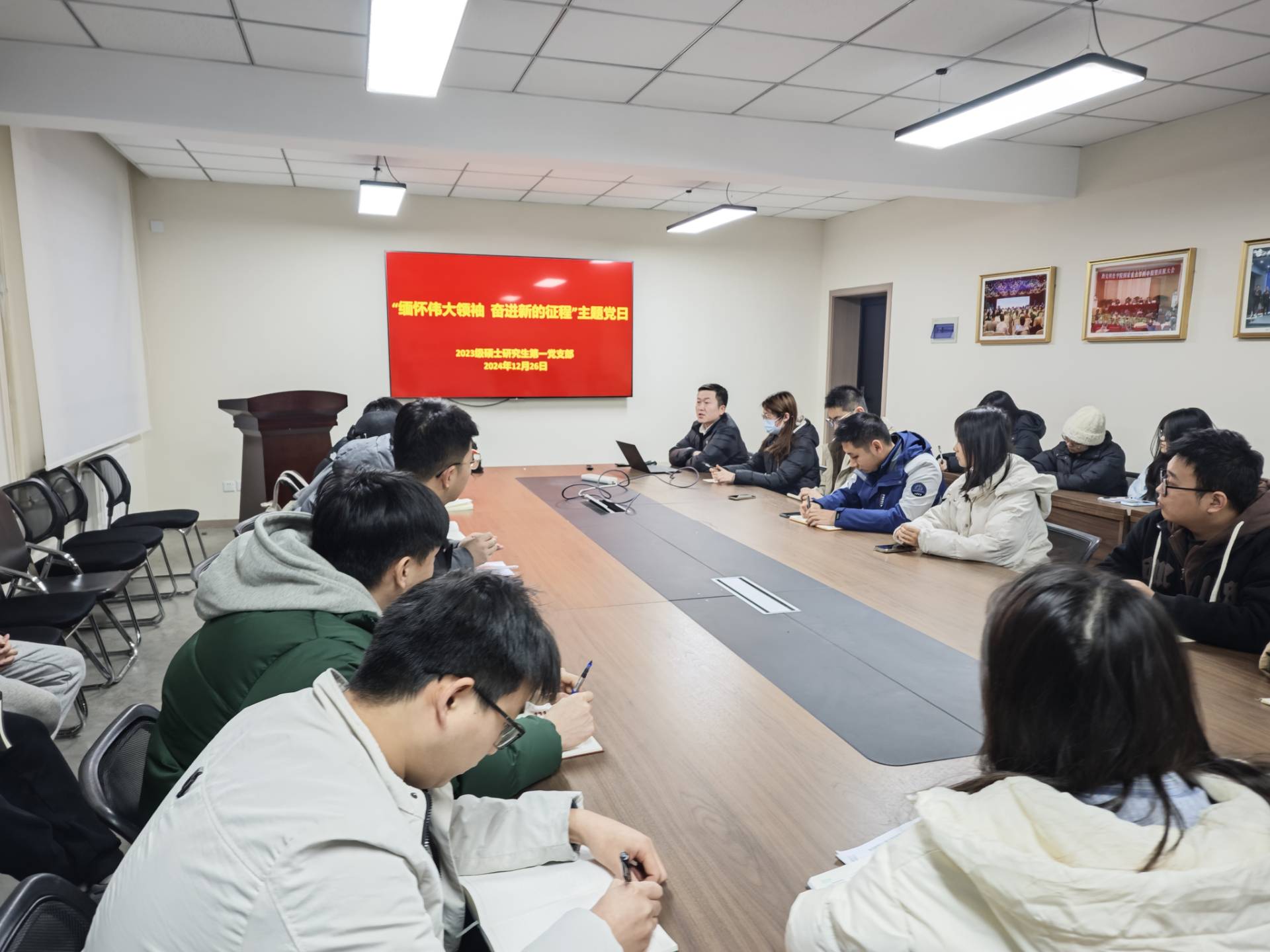 12月26日下午,十大外围足球平台app2023级硕士研究生第一党支部在雁塔校区北院学科楼205会议室,开展“缅怀伟大领袖 奋进新的征程”主题党日。支部书记同超主持活动。