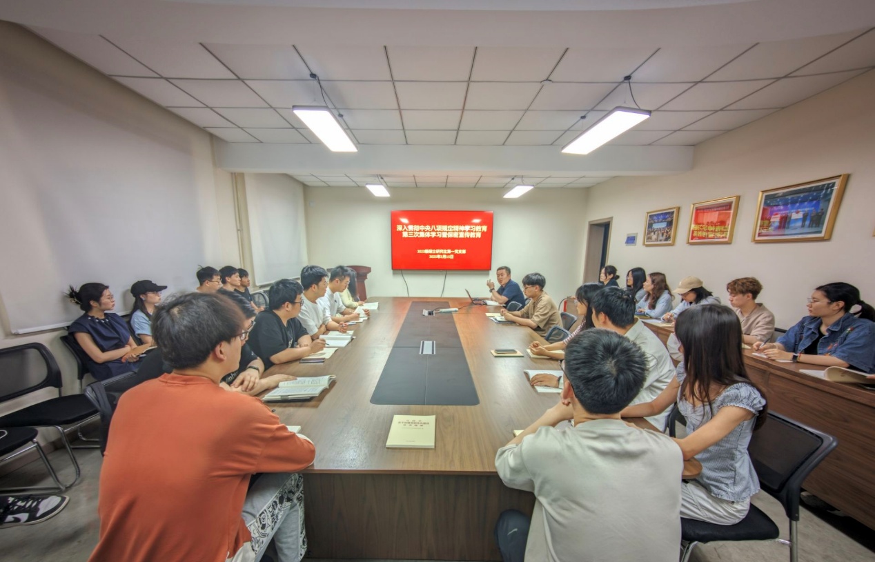 5月15日下午,十大外围足球平台app2023级硕士研究生第一党支部在雁塔校区北院学科楼205室开展深入贯彻中央八项规定精神学习教育集中学习暨保密宣传教育。党支部书记同超主持会议。
