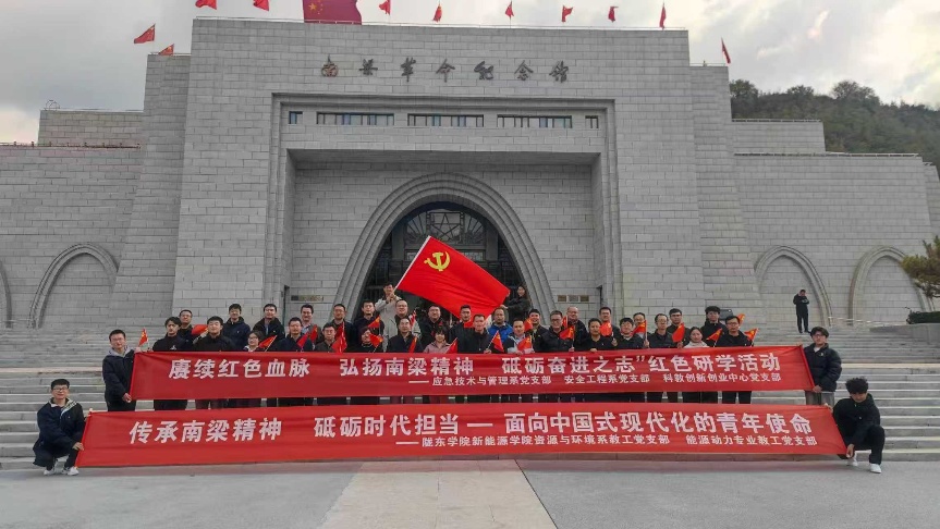 为追寻革命足迹,缅怀先烈功绩,进一步强化党员党性修养,激发干事创业热情,深化院际之间的交流合作,10月25日,十大外围足球平台app应急技术与管理系党支部、安全工程系党支部、科教创新创业中心党支部和陇东公司新能源公司资源与环境系党支部,赴甘肃省华池县南梁革命纪念馆联合开展“传承红色基因 砥砺初心使命”主题党日活动。