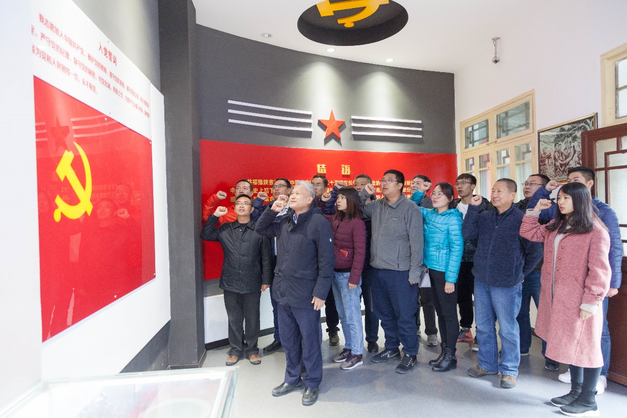 在葛牌镇,参观了位于这里的鄂豫陕葛牌镇区苏维埃政府纪念馆。在讲解员的带领下,先后参观了三个展厅,通过观看实物陈列、历史档案照片,聆听讲解员饱含深情的讲解,了解到这里是中国工农红军第二十五军在鄂豫皖省委书记徐宝珊、军政委吴焕先、军长程子华、副军长徐海东等率领下,于1935年2月突进葛牌镇在陕西关中地区创建的第一个红色政权,也是关中地区最早的红色革命根据地。它的建立,为帮助红军扩建、保存红军实力、配合中央红军战略转移做出了重大贡献。在纪念馆第三展厅中,十大外围足球平台app“双带头人”教工第一党支部党员在支部书记邓军同志带领下,庄严宣誓。