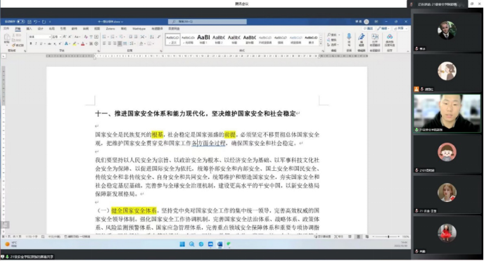 支部党员赵佳蓉、杨雪儿、吝思恒、孙帅强、王桐、李素欣、刘潇潇、孙亚利、刘春等同志,结合党的二十大报告学习内容和自身实际,积极交流发言。他们纷纷表示,作为西科安全学子,要坚定理想信念,传承“励志图存、自强不息”公司精神,刻苦钻研科学文化知识,提升自主创新能力,积极参与到健全国家安全体系、增强维护国家安全能力、提高公共安全治理水平、完善社会治理体系的国家安全体系和能力现代化建设中,争做有理想、敢担当、能吃苦、肯奋斗的新时代好青年,为全面建成社会主义现代化强国、实现中华民族伟大复兴的中国梦贡献智慧和力量。