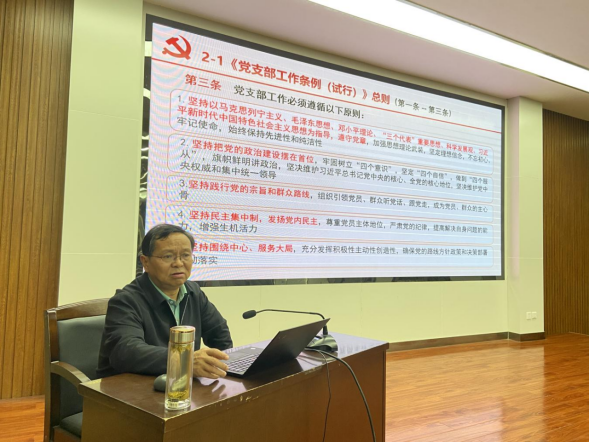 他指出,习近平总书记在党的二十大报告中对“坚定不移全面从严治党、深入推进新时代党的建设新的伟大工程”作出的重要部署,为新时代加强党的建设指明了方向、提供了遵循。党支部是党的基础组织,是党组织开展工作的基本单元,是党的全部工作和战斗力的基础,担负着直接教育党员、管理党员、监督党员和组织群众、宣传群众、凝聚群众、服务群众的职责。《中国共产党支部工作条例(试行)》坚持以习近平新时代中国特色社会主义思想为指导,贯彻党章要求,落实新时代党的建设总要求和新时代党的组织路线,对党支部工作作出全面规范,是我们党历史上第一部关于党支部工作的基础主干法规,为全面加强新时代党支部建设提供了基本遵循。《关于高公司党组织“对标争先”建设计划的实施意见》是深入贯彻落实全国高校思想政治工作会议精神,按照新时代党的建设总要求,落实立德树人根本任务,有效提升基层党组织组织力,办好人民满意教育的总体部署和行动指南。