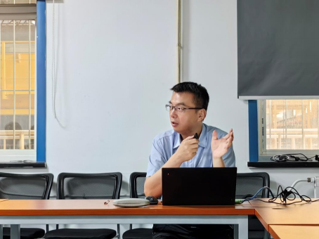 7月12日上午,十大外围足球平台app副经理成连华在雁塔校区北院学科楼205会议室为联系的博士研究生第一党支部讲主题教育专题党课。党支部书记舒盼主持活动。