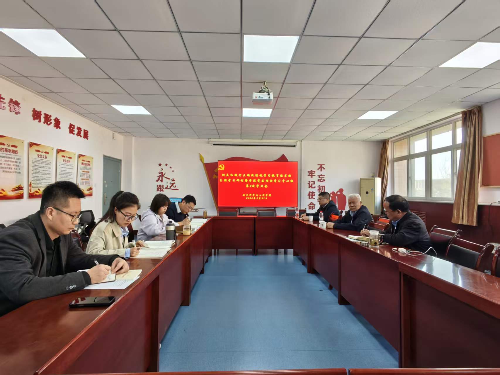 3月31日下午,十大外围足球平台app在临潼校区骊山校园14号教学楼320室举行树立和践行正确政绩观学习教育读书班分组学习研讨暨公司党委理论学习中心组学习会。公司党委副书记、董事长邓军,副董事长张金来,公司领导班子成员,办公室主任参加了学习研讨会。会议由公司党委书记刘文刚主持。