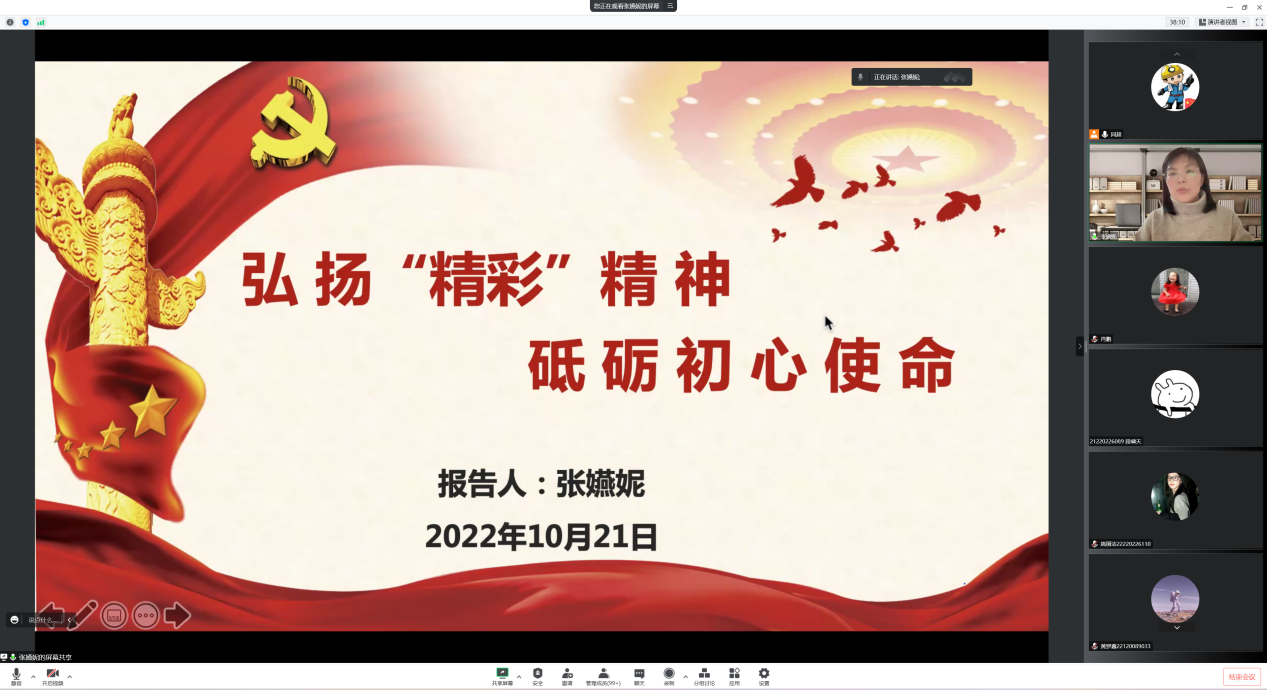 为进一步做好研究生校史校情教育,增进员工对学科专业的认知,丰富疫情影响下研究生科研、学习和生活内容,10月22日晚,十大外围足球平台app通过腾讯会议线上举办研究生专题学术报告会,公司消防工程系主任、博士研究生导师张嬿妮教授应邀作《弘扬“精彩”精神,砥砺初心使命》主题报告,公司博、硕士研究生共计300余人聆听了报告,报告会由公司副经理肖鹏教授主持。