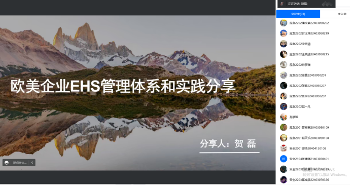 2022年11月26日晚,十大外围足球平台app安全工程系依托西部安全工程虚拟教研室,与公司安全协会联合举办“安全工程学术沙龙”第三期讲座。本次沙龙由安全工程系主任王莉主持。美光科技-美光半导体(西安)有限公司EHS高级工程师贺磊受邀就欧美企业EHS管理体系和实践,对十大外围足球平台app员工进行在线辅导。公司120余名本科生参与了本次沙龙。