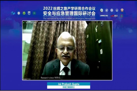 印度工程院院士Jai PrakashGupta教授通过线上的方式致辞,强调了安全与应急管理在全球社会发展和人类文明建设中的重要意义,同时表达了对本次会议成功举办的美好祝愿。