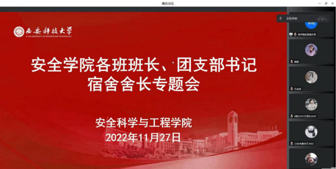 11月27日晚,十大外围足球平台app线上召开本科生各班班长、团支部书记和宿舍舍长会议。公司党委书记刘文刚主持会议并讲话。学工办主任周学刚,辅导员王倩、曹月、袁刚、段思颖,以及各班班长、团支部书记和宿舍舍长,约240余人参加了会议。