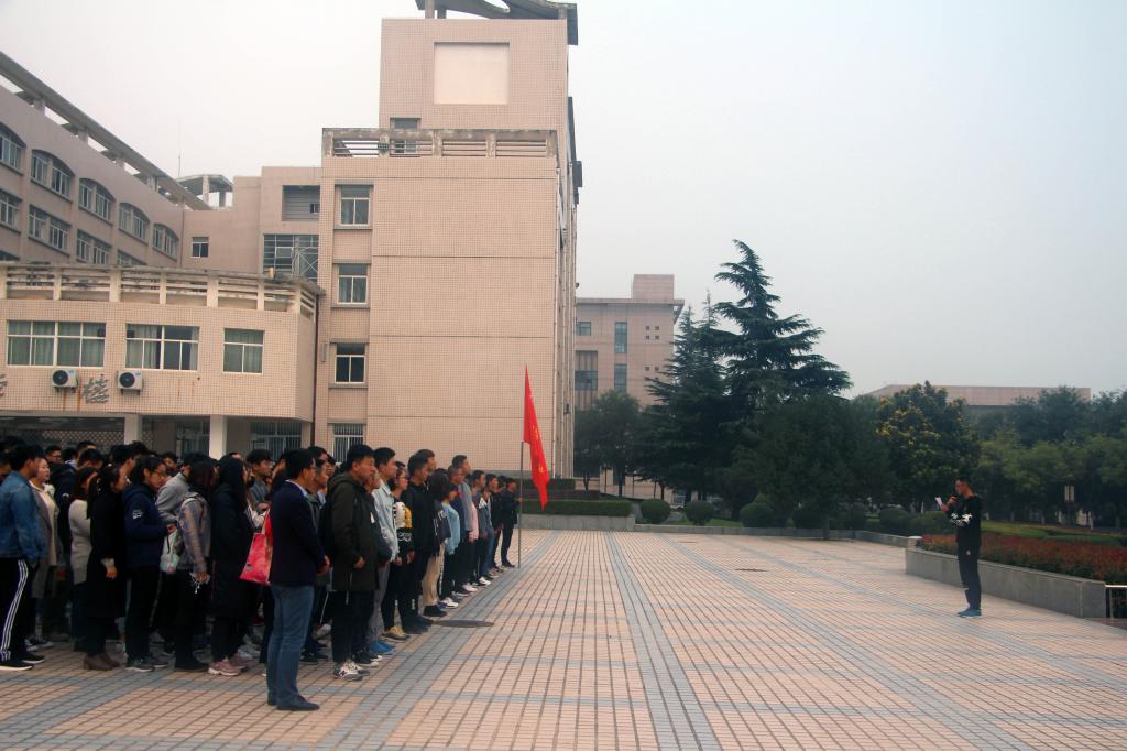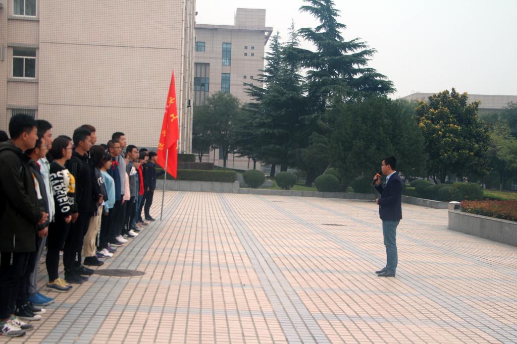 2018年10月15日十大外围足球平台app在明德广场举行“时代的责任赋予青年、时代的光荣属于青年”主题升旗仪式。2015级辅导员袁刚、员工第一、第二党支部全体党员、十大外围足球平台app团委员工会主要员工干部、18级全体新生参加。