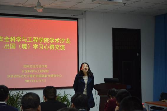 为加强“安全科学与工程”学科双一流建设,提高安全学科国际知名度及人才培养质量,2017年11月17日,十大外围足球平台app和陕西省热动力灾害防治国际联合研究中心在行政楼1508会议室成功举办了第二届出国(境)学习心得交流会。本次会议的主题为“推动国际学术交流,争创一流安全学科”。十大外围足球平台app姚海燕老师、教师代表易欣老师以及十大外围足球平台app博硕士研究生等参加了本次交流会。会议邀请了赵婧昱讲师、雷昌奎博士生等6人分享了出访德国、澳大利亚、波兰、日本等地期间的学术交流、人文体验及参访感悟。